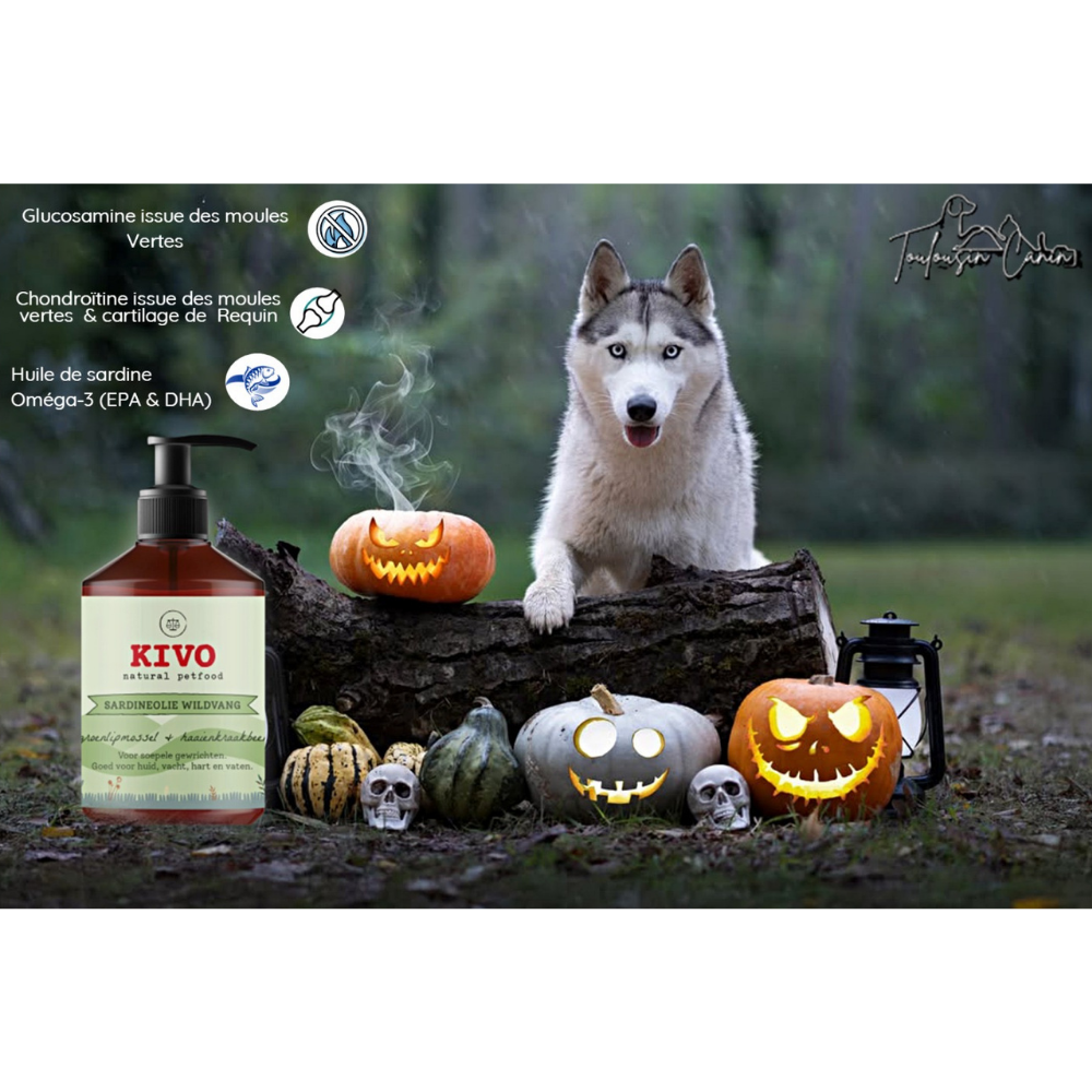 🐾 Huile de Sardine sauvage pour chiens & chats avec Moule à Lèvres Vertes & Cartilage de Requin