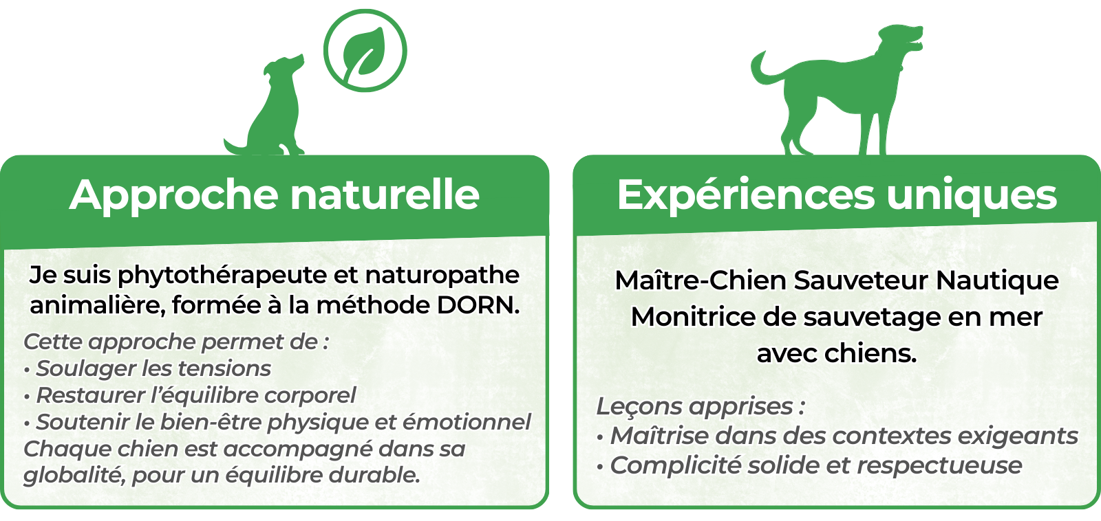 Ces connaissances me permettent aujourd’hui d’accompagner chaque chien dans sa globalité, sur le plan physique, émotionnel et énergétique.